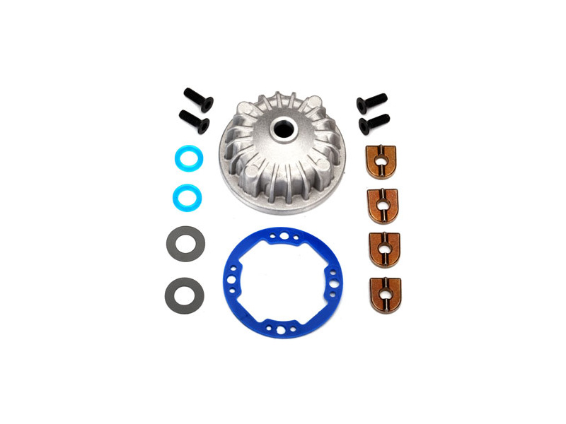 Náhradní díl pro centrální diferenciály používané v modelech Traxxas v měřítku 1:10 a 1:12: krabička diferenciálu. Obsahuje hliníkovou krabičkou, těsnění, X-kroužek (2), podložky 5x10x0,05 mm (2) a šrouby 2,5x8 mm (4).