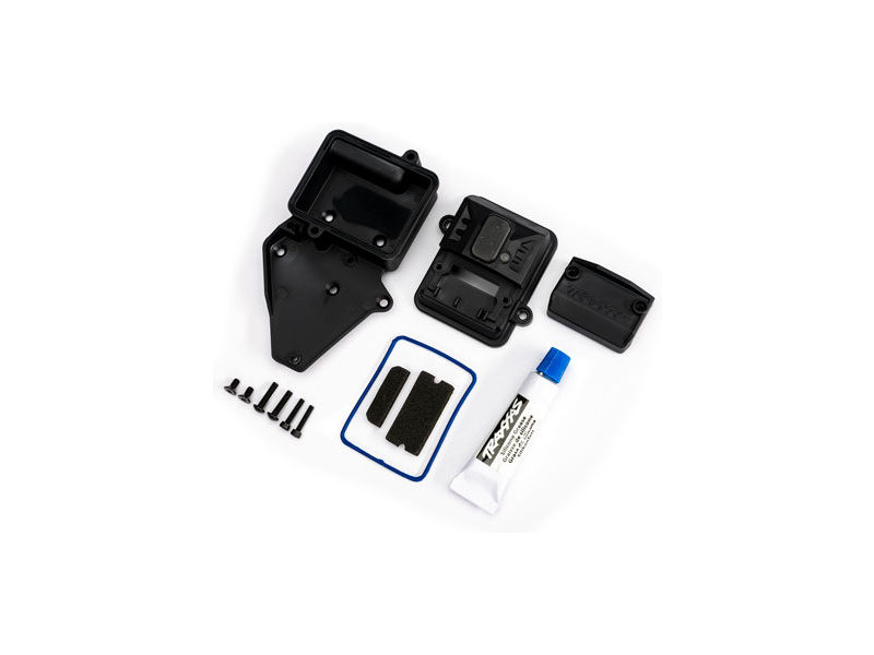 Náhradní díl pro RC model auta Traxxas Jato 4x4: krabička přijímače. Obsahuje krabičku, gumovou zátku, pěnové průchodky, silikonový těsnící kroužek, kryt kabelů, mazivo, šroub: 2,5x12mm CS (2)/ 3x6mm CCS (2)/ 3x12mm BCS (2).