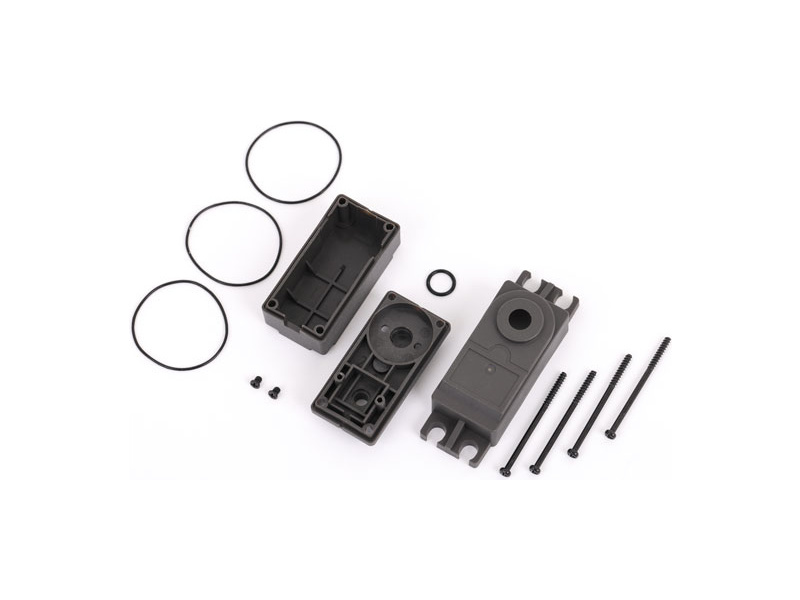 Náhradní díl - krabička serva Traxxas 2275. Vrchní a spodní plastová část, přepážka serva, včetně šroubů a těsnění.