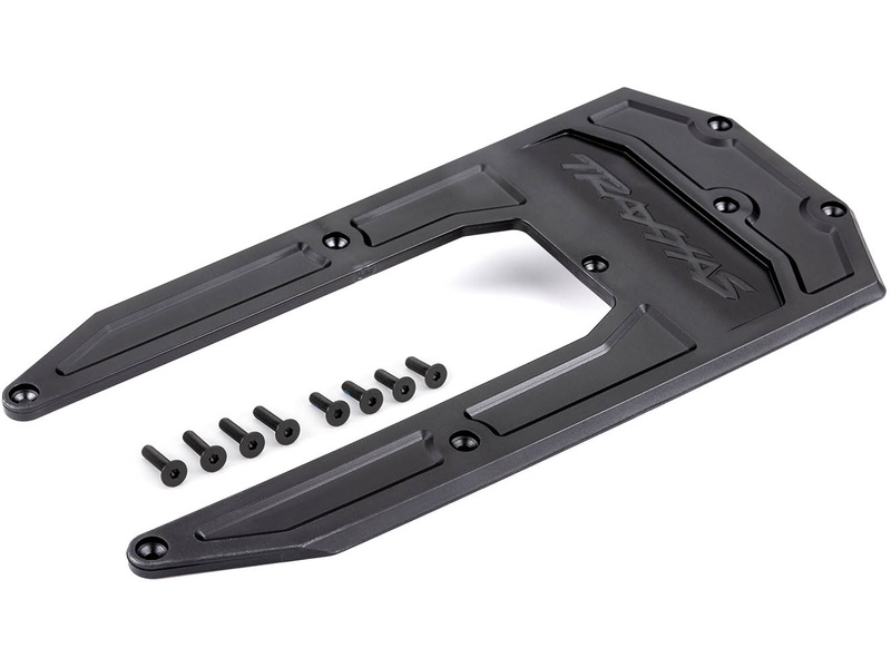 Tuningový díl pro RC model auta Traxxas Sledge: kryt šasi černý. Slouží k ochraně spodní části hliníkové šasi proti poškrábání a poškození. Včetně šroubů k montáži.