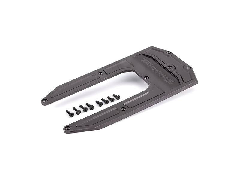 Tuningový díl pro RC model auta Traxxas Sledge: kryt šasi grafitově šedý. Slouží k ochraně spodní části hliníkové šasi proti poškrábání a poškození. Včetně šroubů k montáži.