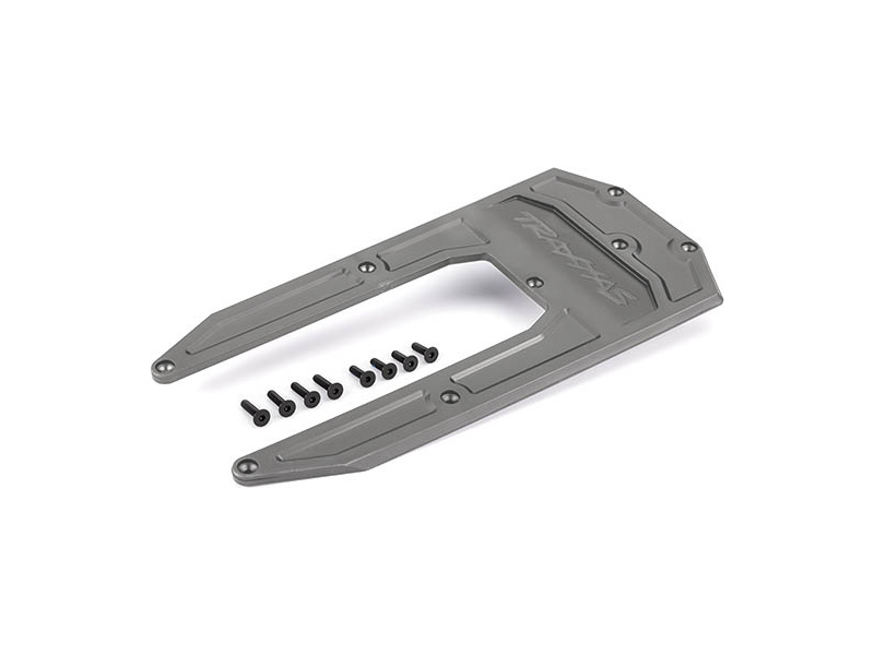 Tuningový díl pro RC model auta Traxxas Sledge: kryt šasi šedý. Slouží k ochraně spodní části hliníkové šasi proti poškrábání a poškození. Včetně šroubů k montáži.