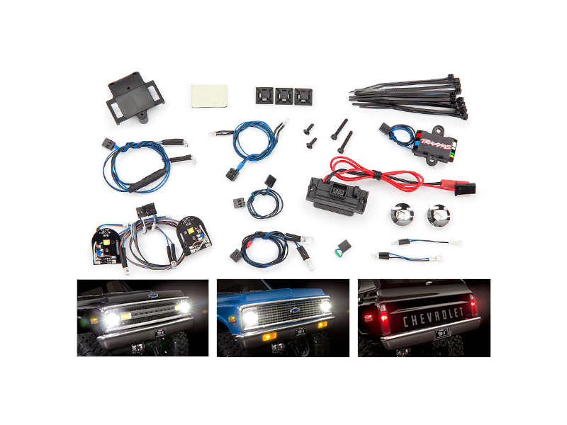 Obsahem balení je kompletní sada LED osvětlení na RC model auta Traxxas TRX-4 s karoserií Chevrolet Blazer 1972. Sada obsahuje Přední LED světlomety, zadní koncové LED světla, oranžové LED směrovky, napájecí modul, propojovací kabely, montážní příslušenství (šrouby, stahovací pásky), manuál EN, DE, FR, SP.