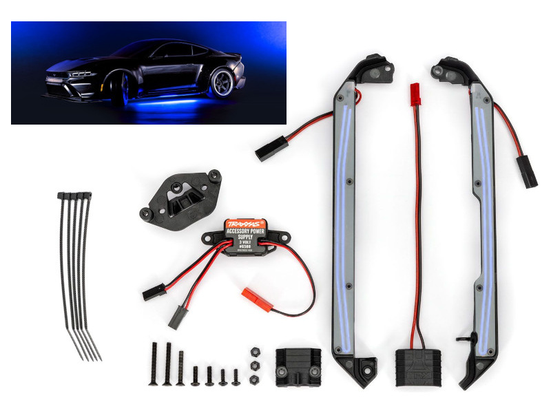 Traxxas LED podsvícení šasi modré dodá nezapomenutelný styl vašemu RC modelu Drift nebo jiným modelům s podvozek 4-Tec 2.0. Kompletní sada dvou prahových lišt s podsvícením, včetně napájecího zdroje, adaptéru konektoru a montážního příslušenství.