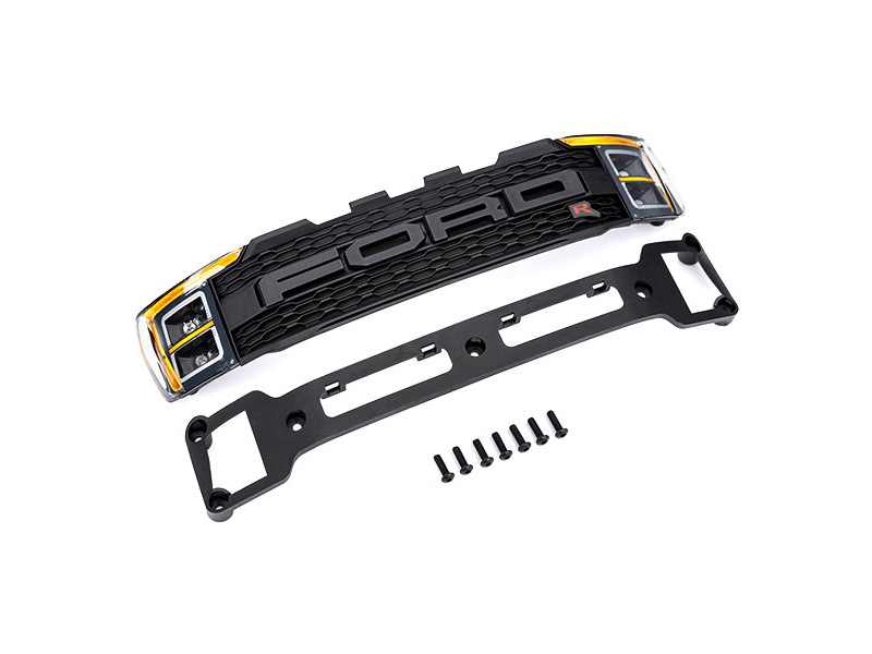 Náhradní díl pro karoserii Traxxas Ford Raptor R 4WD - maska přední s držákem, sestavená, včetně parabol světel a montážních šroubů 3x10mm BCS (7).