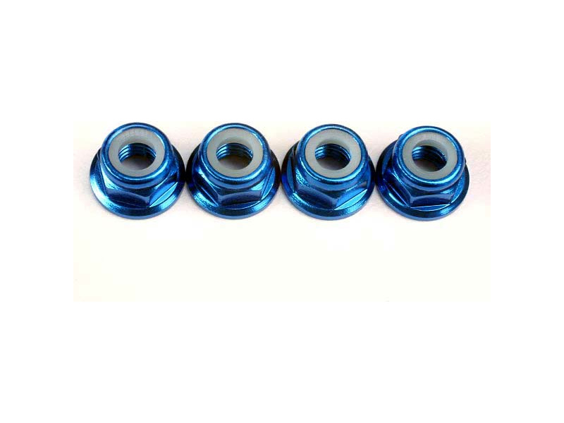 Náhradní díl pro RC modely aut Traxxas: matice M5 samojistná s límcem hliníková modrá (4 ks).