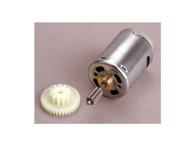 Náhradní díl ke startéru Traxxas EZ-Start: motor s pastorkem. Průměr motoru 27,5mm, průměr osazení na čele 10mm, délka motoru 40,5mm, celková s hřídelí 63mm, délka hřídele před čelem motoru 20mm, pr. hřídele 2,15mm, nalisovaný pastorek š. 10mm. pr. 6mm.