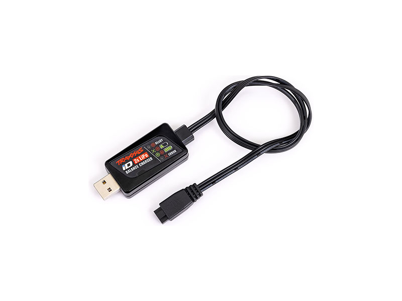 Traxxas nabíječ USB. Nabíjecí proud až 2A. Konektor baterie Traxxas iD pro baterie #2821 (2S LiPo 750 mAh). Napájení z libovolného USB-A výstupu. Náhradní díl pro RC modely auta Traxxas TRX-4M.