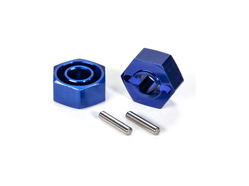 Náhradní díl pro RC modely aut Traxxas Slash, Rustler: Hliníkový modře eloxovaný náboj kola, šestihran 12 mm, otvor na hřídel o průměru 5 mm.