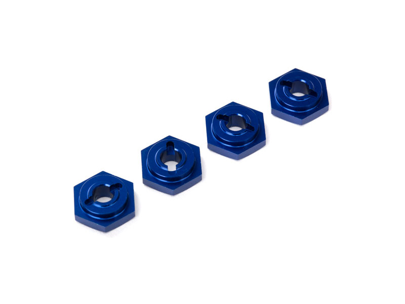 Hliníkový modrý náboj kola s čepy pro RC modely aut Traxxas 1:16. Balení obsahuje 4 kusy.
