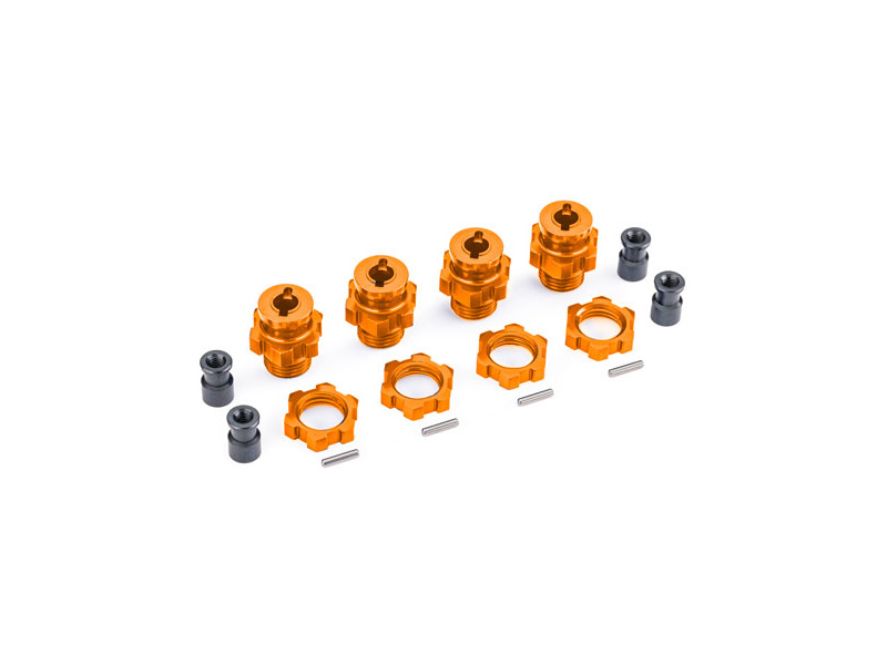 Traxxas náboj kola 17mm drážkovaný hliníkový oranžový (4) (pro #9080 - sadu Extreme Heavy Duty) - vč. 4x matice kol, 4x vložka náboje, 4x čep.