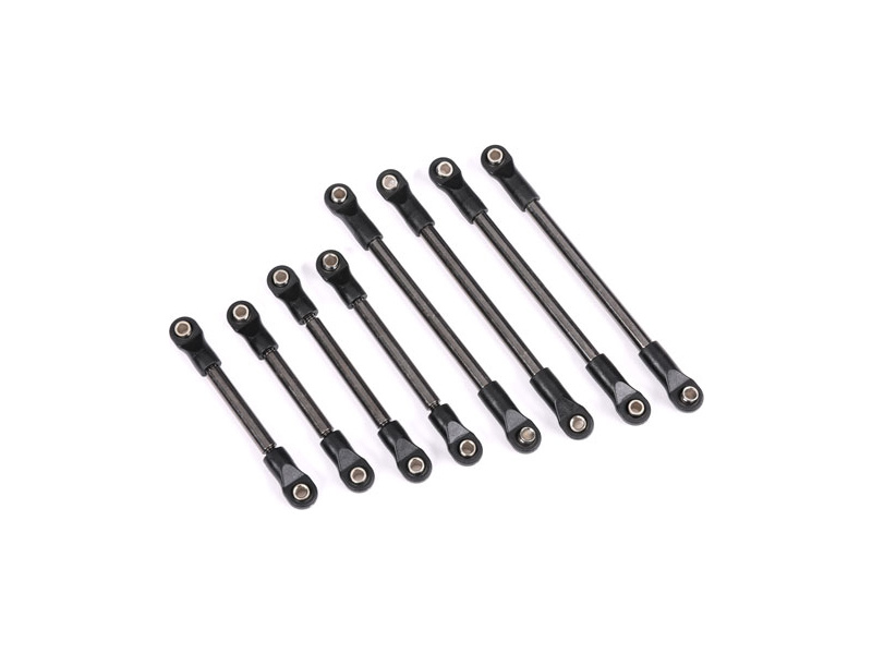 Tuningový díl pro RC modely aut Traxxas TRX-4M: ojničky podvozku ocelové. Sada vysoce pevných a odolných ojniček je určená pro montáž na model TRX-4M High Trail s rozvorem 162 mm.