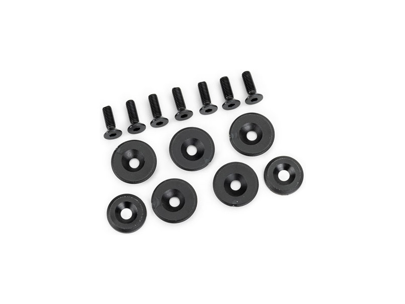Traxxas podložky karosérie - podložky karoserie(2), podložky střechy (5), šroub 3x10 mm CCS (7), určeno pro karoserii Traxxas Slash Mudboss.