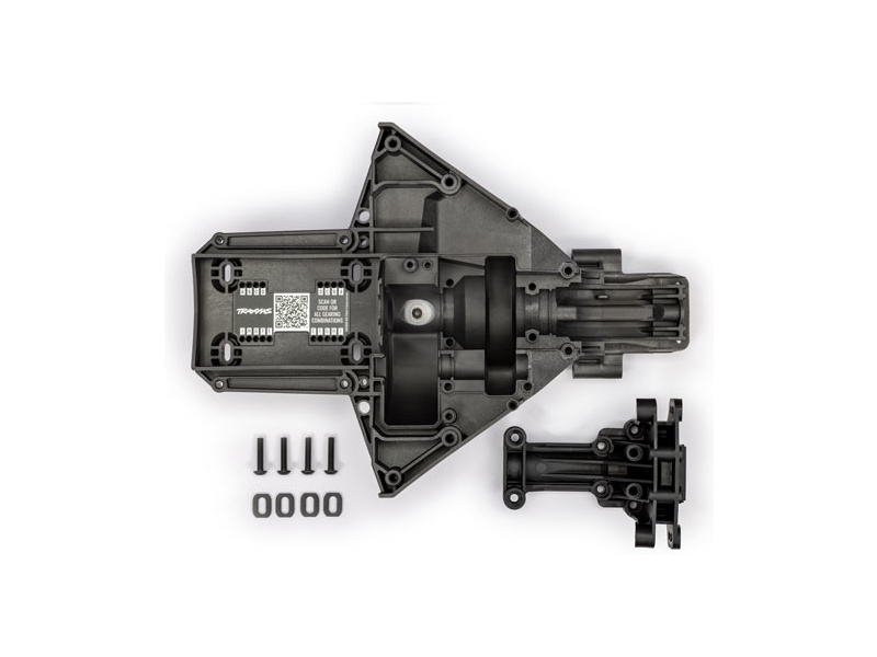 Náhradní díl pro RC model auta Traxxas X-Maxx 1:5 8S: přepážka šasi zadní (vrchní a spodní), včetně podložek motoru.