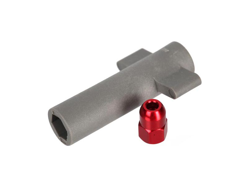 Matice červená hliníková Traxxas slouží pro utažení trubičky antény v kleštině. K utažení matice je přiložen nástrčný klíč.