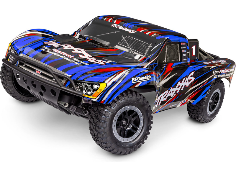 Traxxas Slash je výkonný RC model auta v měřítku 1:10 s náhonem 2WD a rychlostí až 56 km/h. Je plně sestaven a připraven k jízdě. Pohání jej výkonný střídavý motor s regulátorem BL-2S. Jednoduchá RC souprava Traxxas TQ 2.4 GHz poskytuje precizní mechaniku pro přesné řízení. Navíc je model továrně vybaven komponenty sady Extreme Heavy Duty pro vysokou odolnost a exkluzivním bez-sponkovým systémem upínání karoserie.