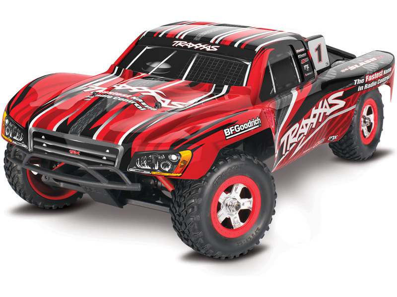 Výkonný RC model auta Traxxas Slash 4WD 1:16, na zahradu a do lehčího terénu, je navržen na platformě osvědčených modelů E-Revo. Výkonný stejnosměrný motor, olejové tlumiče, třecí spojka a diferenciály. Speciální systém odpružení přes vahadla. Akumulátor a USB-C nabíječ v balení. Rychlost až 35 km/h.