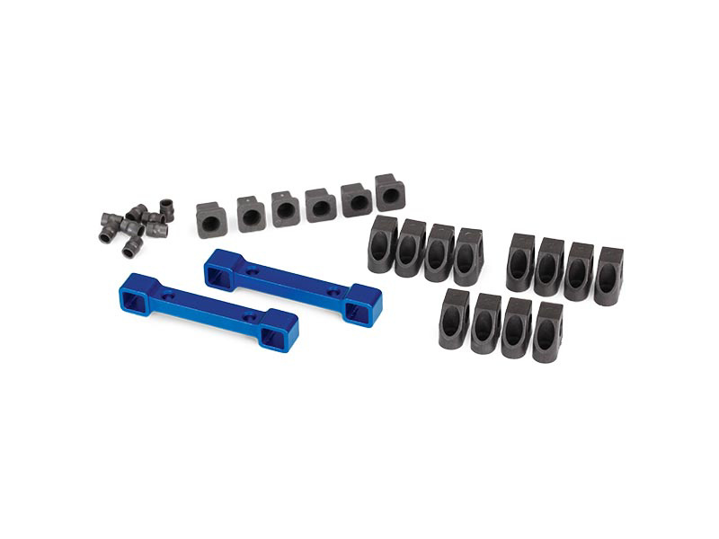Tuningový díly pro RC modely auta Traxxas 4-Tec 2.0: Hliníkové držáky ramen závěsu kol modré.