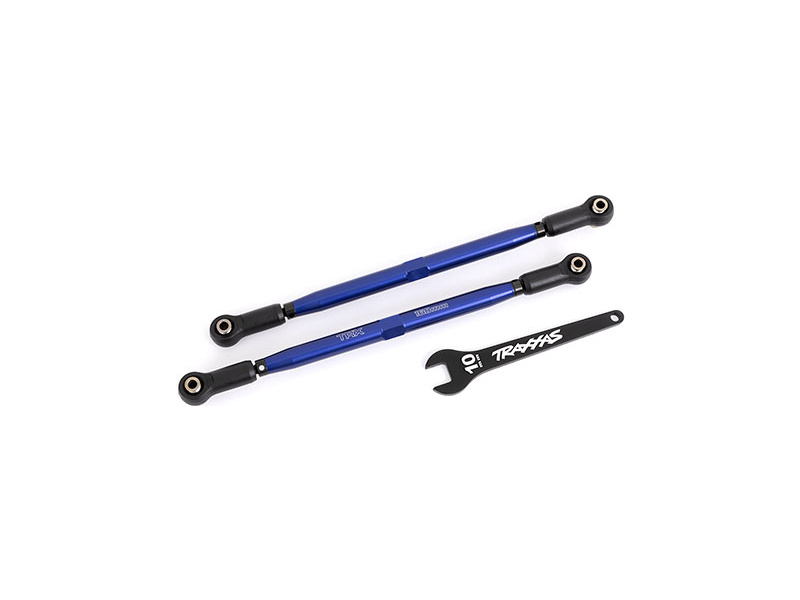 Traxxas spojovačka řízení hliníková modrá (2 ks) - barevně eloxovaný díl, vyrobený z lehkého a vysoce odolného hliníku 7075-T6. Náhradní díl pro RC model auta Traxxas Funco a dále pro XRT / X-Maxx s instalovanou sadou rozšířeného rozchodu WideMaxx.