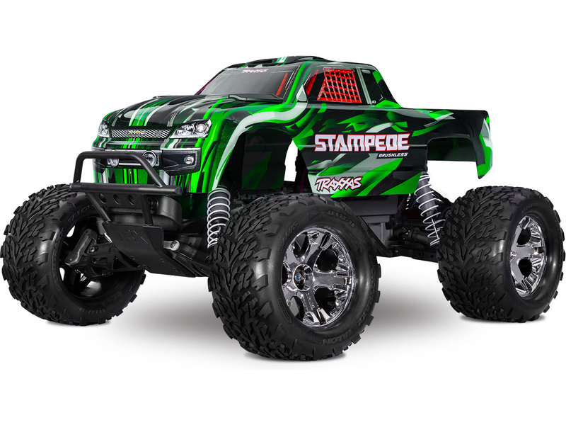 RC model auta Stampede 1:10 typu Monster Truck je poháněn střídavým motorem a regulátorem BL-2S pro napájení 2S LiPo akumulátory. Střídavý pohonný systém přináší brutálnější akceleraci, dlouhou životnost a rychlost modelu až 64 km/h. Navíc je model továrně vybaven sadou Extreme Heavy Duty pro vysokou odolnost a exkluzivním bez-sponkovým systémem upínání karoserie.