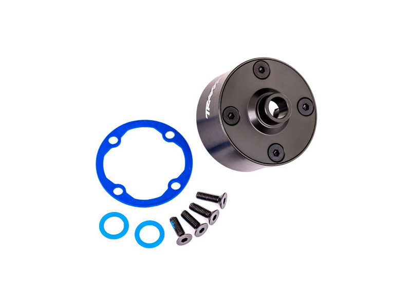 Traxxas tělo diferenciálu hliníkové šedě eloxované - těsnění, 4x šroub 3x10 mm CCS.