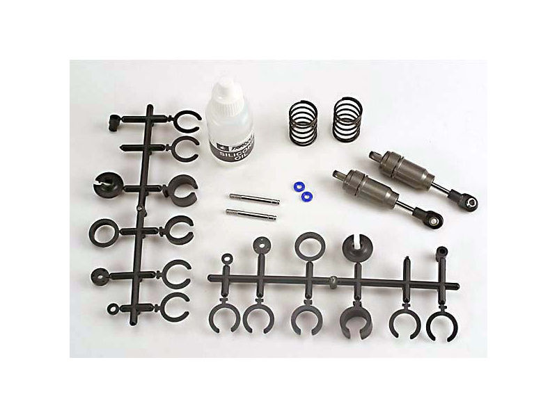 Traxxas hliníkový tlumič Big Bore short v krátkém provedení s pružinou. Na vnitřní straně povlakovaný teflonem (PTFE). Pístnice jsou ocelové s povlakem nitridem titanu (TiN). Sestaveno z 32 mm pístnicemi, součástí balení jsou i pístnice 29 mm.