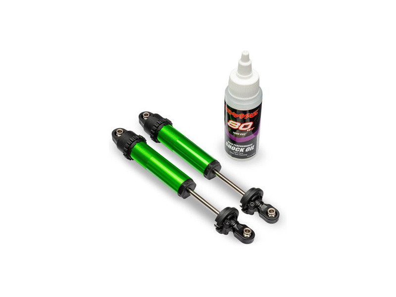Traxxas tlumič GT-Maxx zadní hliníkový zelený (2). Bez pružin (prodávají se samostatně). Náhradní díl pro RC model auta Traxxas Funco.