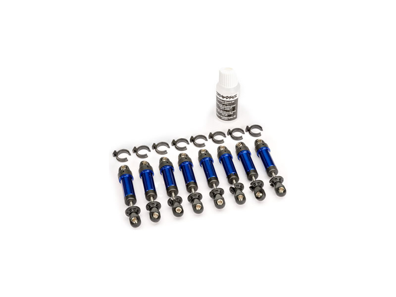 Tuningový díl pro RC modely aut Traxxas TRX-4MT: Traxxas tlumič GTM hliníkový modře eloxovaný (8). Sestavený, bez pružin.