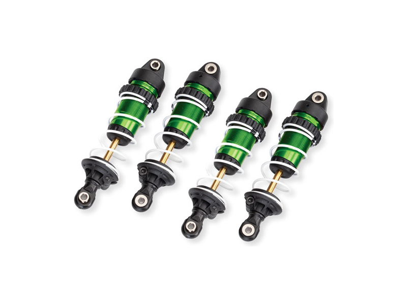 Vysoce kvalitní hliníkové tlumiče GTR Long (dlouhý) - sada 4ks. Sestavené s pružinami. Zeleně eloxované, potažené PTFE pro extra hladký chod a pístnice s TiN - nitridem titanu pro vysokou odolnost a tvrdost povrchu.