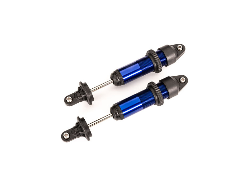 Traxxas tlumič GTX hliníkový modře elexovaný (2ks). Nastavení pomocí matice. Plně sestavený. Pružiny a olej nejsou obsahem balení.