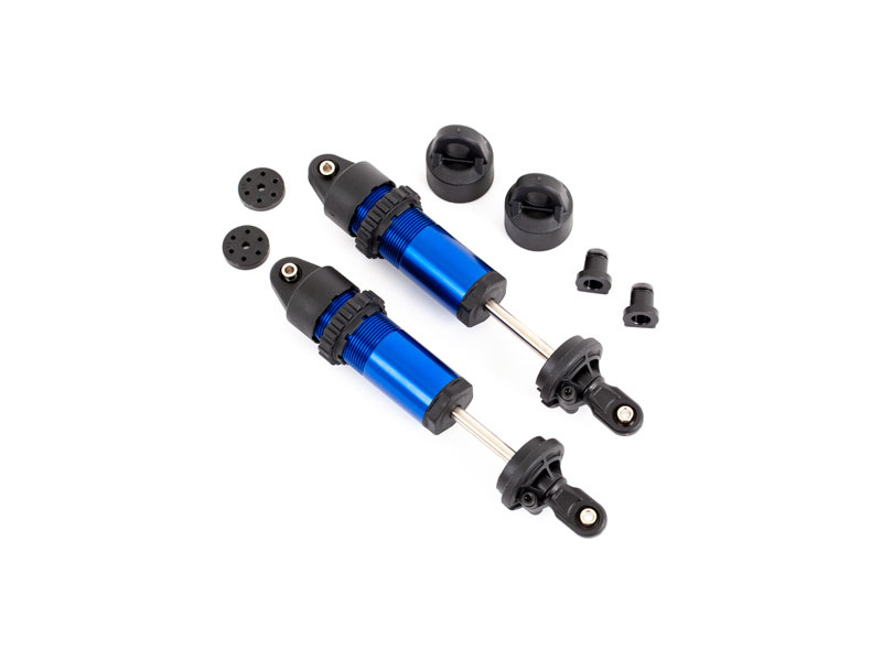 Traxxas tlumič krátký GT-Maxx hliníkový modře eloxovaný, sestavený, bez pružin - (2ks).