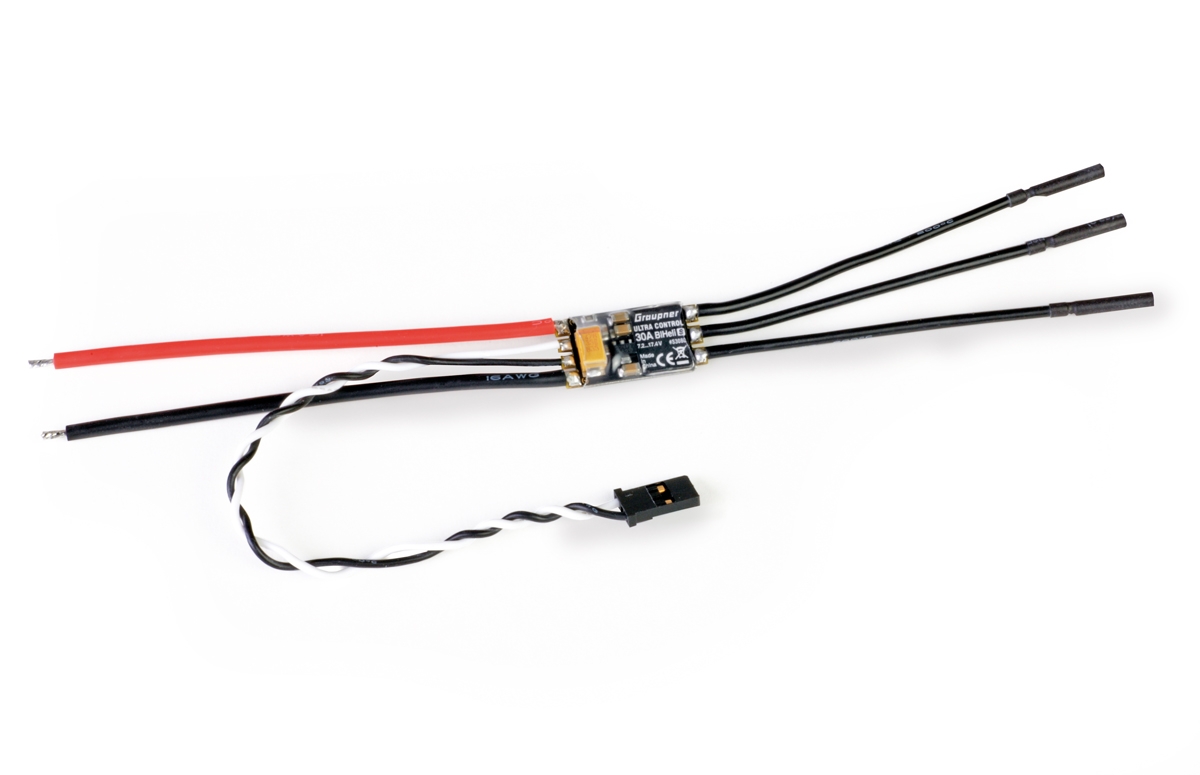 Ultra Control 30 A Race rozpoznává normální (PPM) přijímací impulsy, ale také OneShot, Multishot nebo D-Shot. Regulátor a servo cesty jsou již optimalizovány pro GR-18 a nastavení Racecopter. 100 mm přijímací kabel je předinstalován.