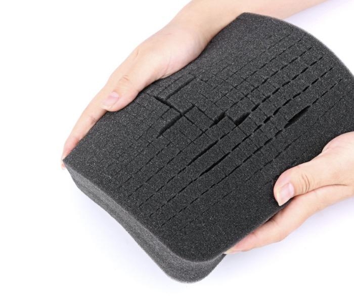 Pěnová vložka do velkého DIY nylonového pouzdra IR-C15 je vyrobena z černé pěny a váží 50 g. Rozměry vložky jsou 31 × 20 × 3 cm, obsahuje 27 × 17 kostek o velikosti cca 1 × 1 cm, které lze snadno oddělit a upravit dle potřeby. Ideální pro bezpečné uložení a ochranu citlivého vybavení uvnitř pouzdra.