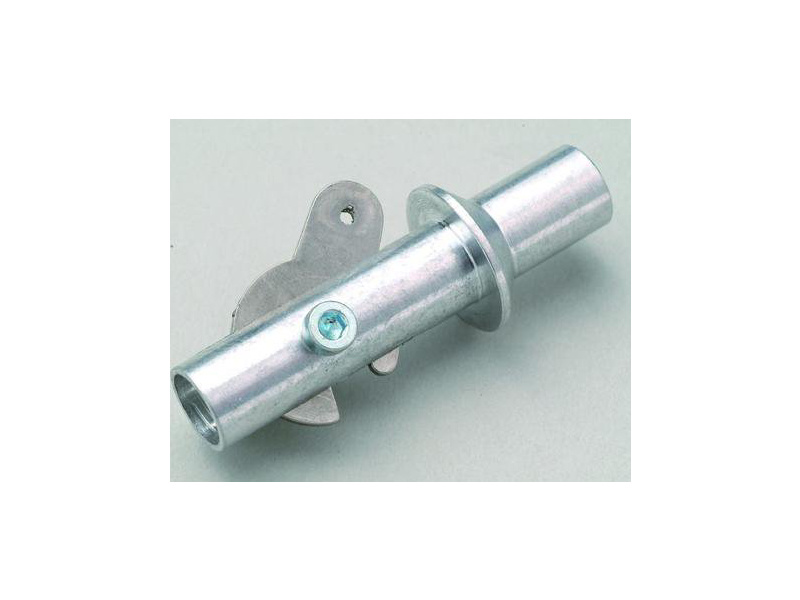 Vlečný háček pro aerovlek velký pro montáž do přední části trupu větroně. Délka 50mm, průměr 10mm s lemem 17mm, otvor průměr 8mm. Ocelová páka pojistného mechanismu.