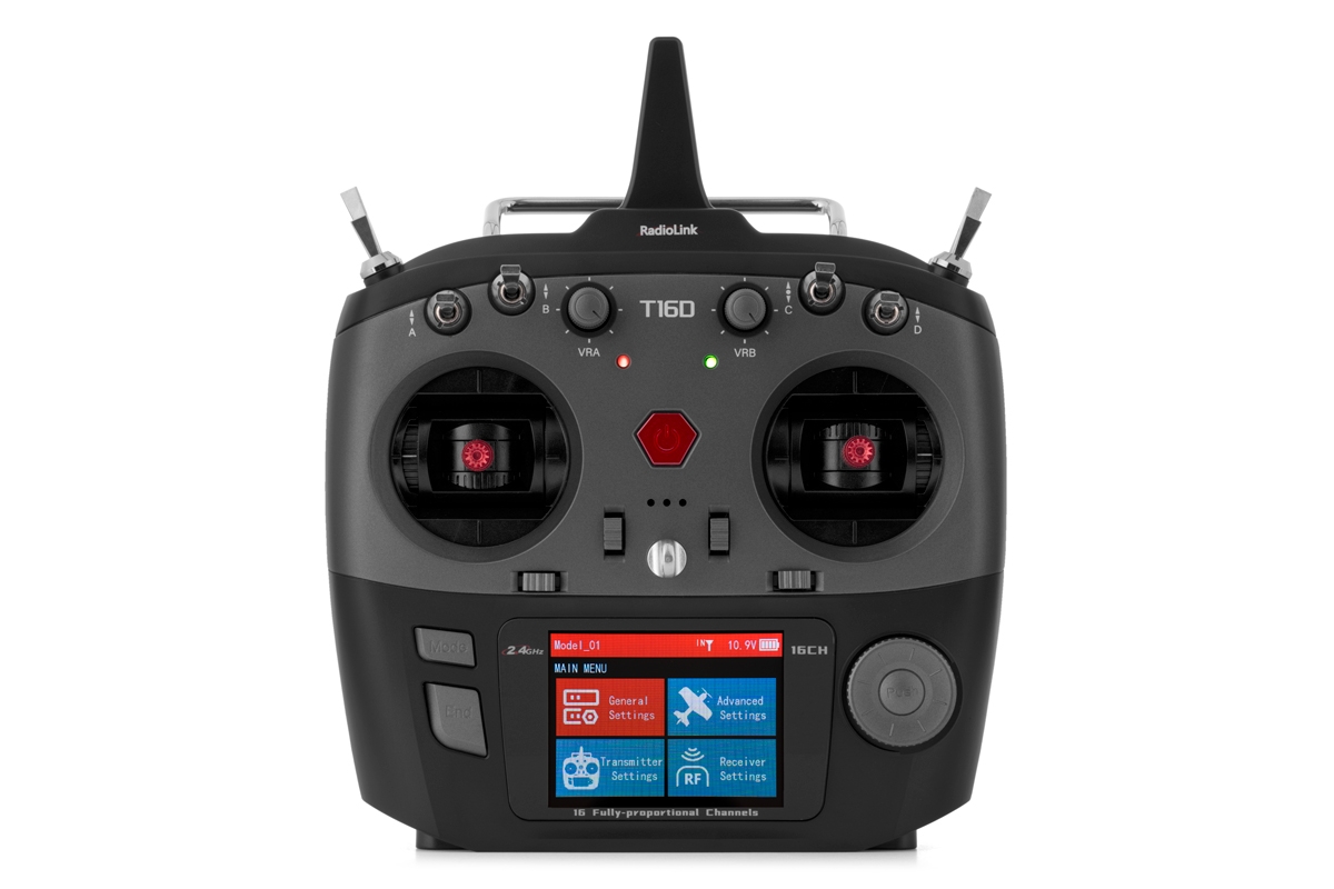 T16D je šestnáctikanálový počítačový vysílač pro rekreační modeláře umožňující nastavování základních funkcí, jako je velikost a smysl výchylek, disponuje i celou řadou mixů pro ovládání široké škály modelů – motorových akrobatických modelů, větroňů, multikoptér, aut a jiné pozemní techniky i lodí. Pracovat může s interním VF dílem s přenosovým systémem FHSS (stejný jako u T8FB/T8S nebo u pistolových vysílačů RadioLink R4GS/R6GS/R8X), ale umožňuje i připojení externích VF modulů ELRS nebo TBS Crossfire s dlouhým dosahem. Vyznačuje se praktickou skříňkou dokonale padnoucí do ruky s klasickým, léty prověřeným ergonomickým rozmístěním ovládacích prvků.