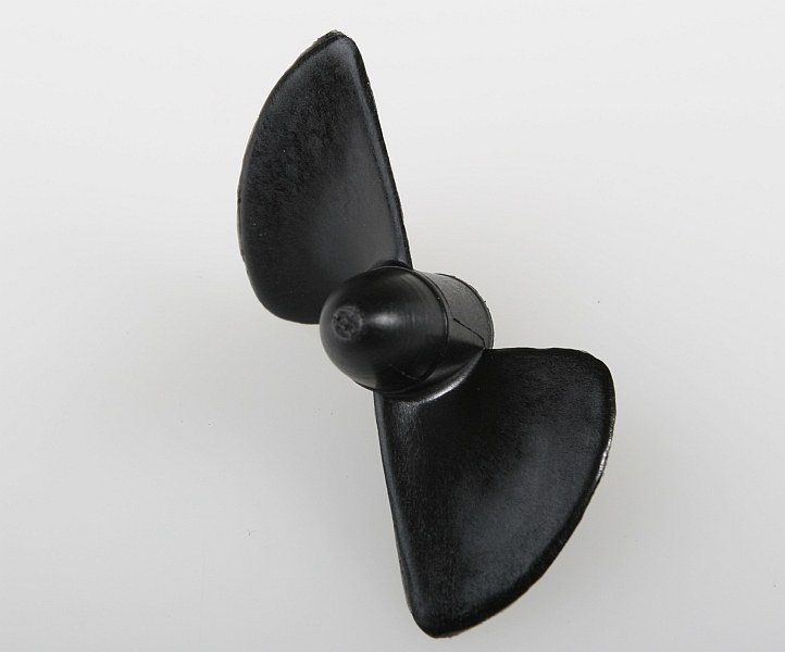 Lodní šroub dvoulistý pro montáž pod loď, stoupání 0,85x průměr, pro vysokootáčkové motory, plast plněný skelnými vlákny, závit M4.