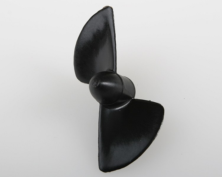 Lodní šroub dvoulistý pro montáž pod loď, stoupání 0,85x průměr, pro vysokootáčkové motory, plast plněný skelnými vlákny, závit M4.