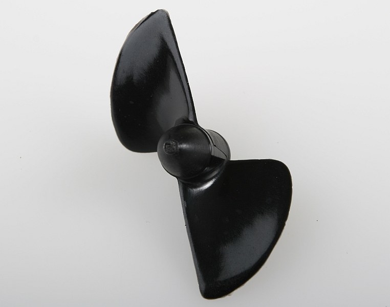 Lodní šroub dvoulistý pro montáž pod loď, stoupání 0,85x průměr, pro vysokootáčkové motory, plast plněný skelnými vlákny, závit M4.