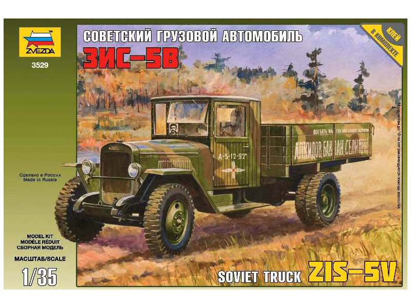 Zvezda plastikový model sovětského nákladního automobilu ZiS-5V v měřítku 1:35 ke slepení. Stavebnice obsahuje 156 dílků, délka 170 mm, obtížnost 3.